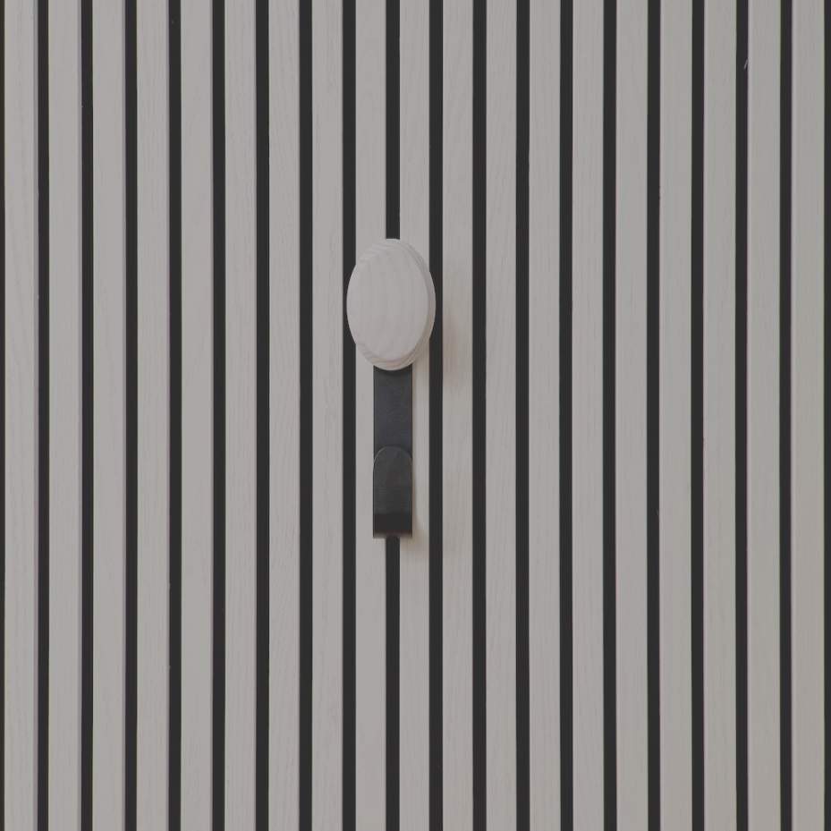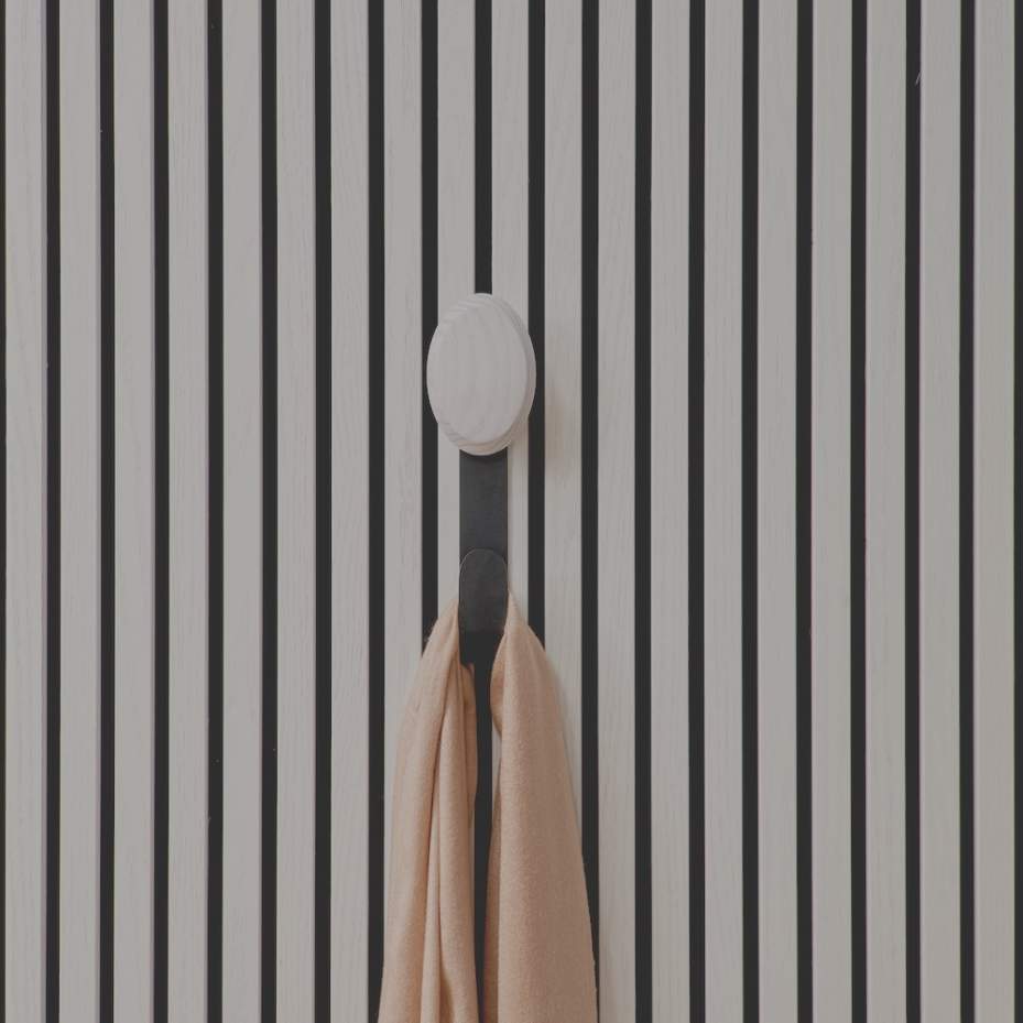 A ter Hürne Jesper hosszú kampó a fal- és mennyezeti panelrendszerek prémium kiegészítője. A fekete, porfestett fém tartóelem elegáns megjelenést biztosít, míg a kampó végén található nagy méretű fa gomb természetes, meleg hatást kölcsönöz a kiegészítőnek. A dizájn minimalista, mégis karakteres — tökéletesen illeszkedik modern és skandináv stílusú enteriőrökbe.